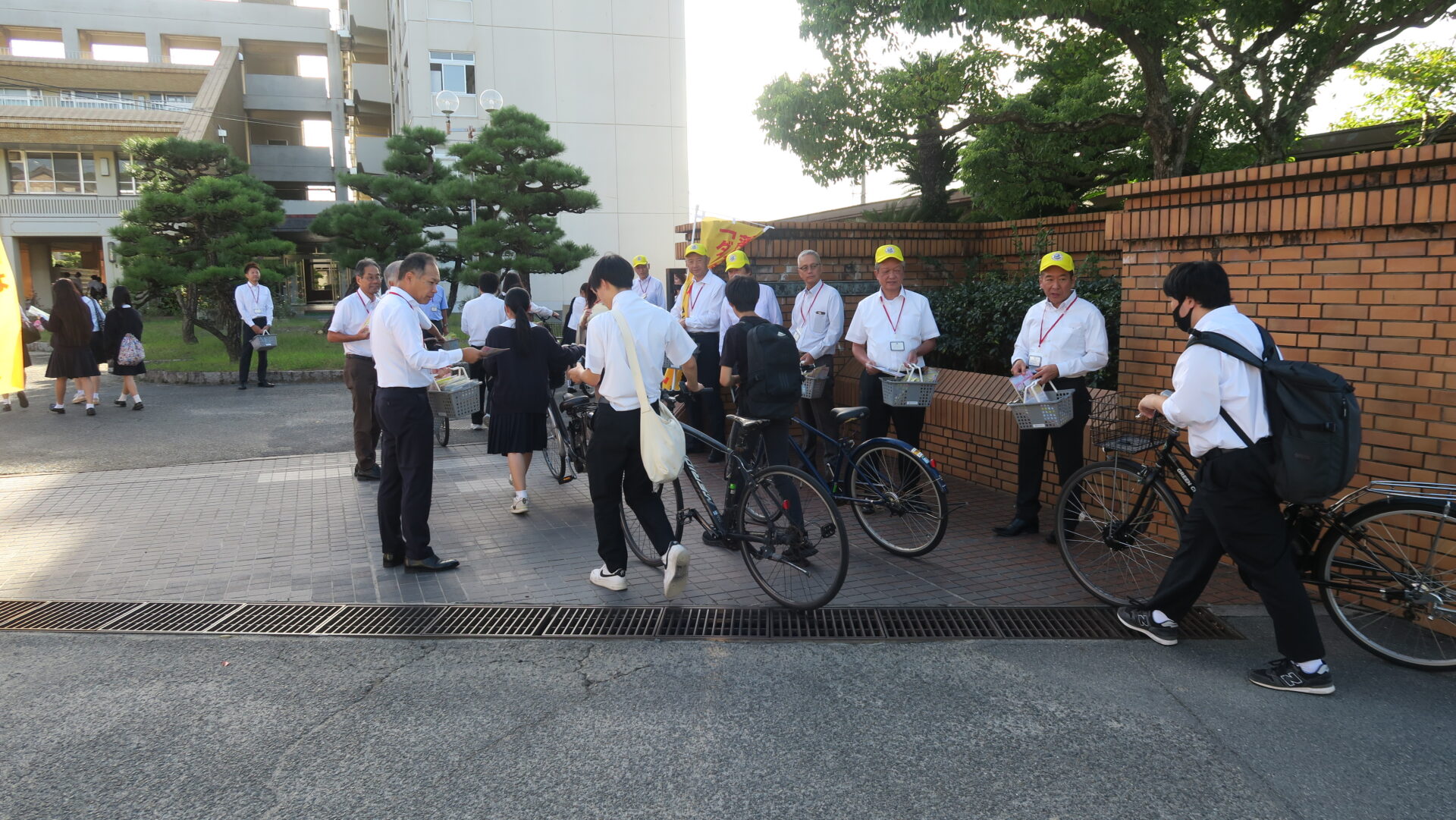 広島県立福山葦陽高等学校の生徒たちに,薬物乱用防止啓発活動のチラシを配りました。