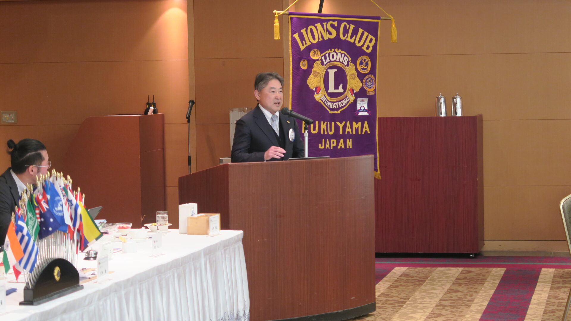 ゲストスピーチは、福山ろうあ協会 手話対策委員長 北崎絢様をお招きし、「聴覚障がい者のつながるところ」をテーマにお話をいただきました。聴覚障がいとは情報障がいであることや音声言語同様に手話も言語であるなど大変興味深いお話しがあり、最後に挨拶や感謝など具体的な手話を会場の皆で学び、「ありがとう」の手話で締めくくられました。
